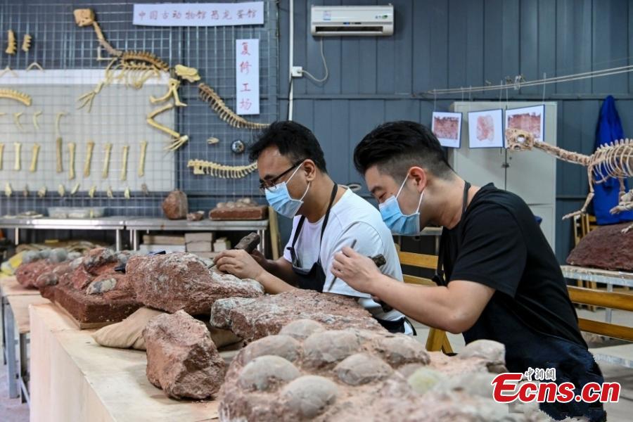 Staff members restore dinosaur egg fossils at the Heyuan Dinosaur Museum insouth China's Guangdong Province, Oct. 25, 2022. (Photo: China News Service/Chen Jimin)