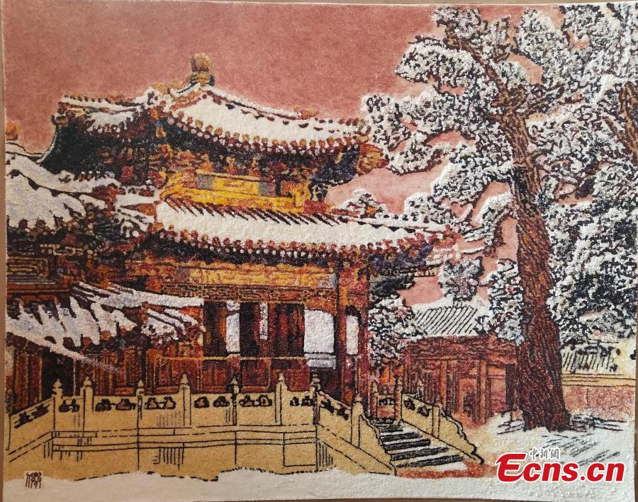 A grain artwork of the Palace Museum created by a villager in Guantao County of Handan City, north China's Hebei Province. (Photo: China News Service/Guo Jiangpeng)