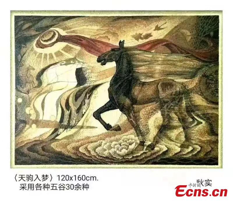 A grain artwork is displayed in Guantao County of Handan City, north China's Hebei Province. (Photo: China News Service/Guo Jiangpeng)