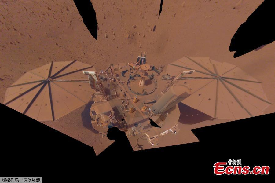 Image made available by NASA on Oct. 27, 2022 shows Mars' red dust has settled on InSight's solar panels, reducing their efficiency.