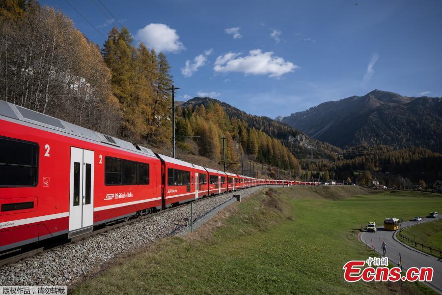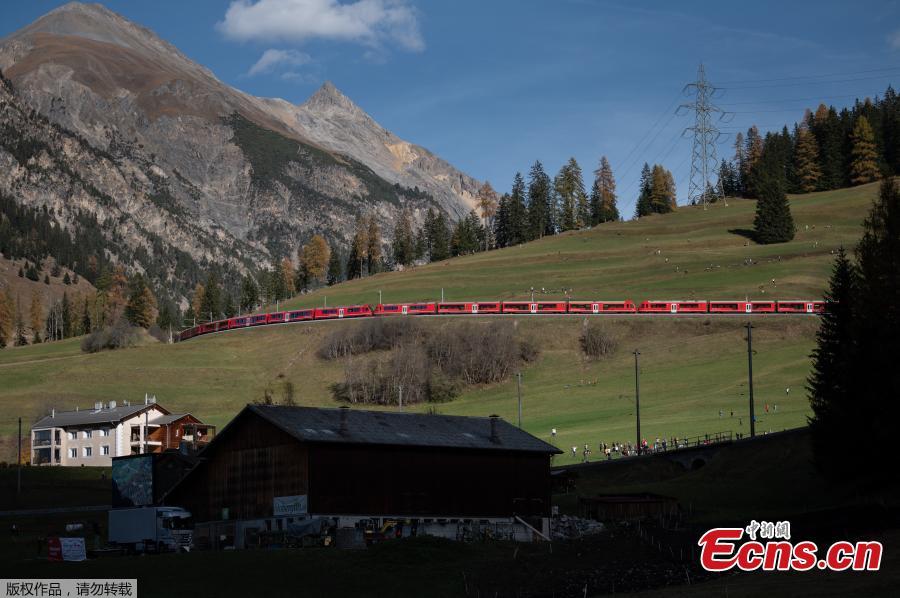 A 1910-meter-long train with 100 cars passes near Bergun, Switzerland, Oct. 29, 2022. (Photo/Agencies)