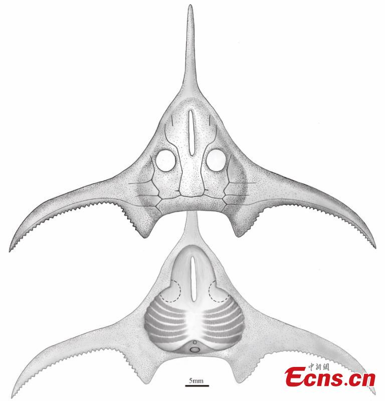 New material of the 410-million-year-old Pterogonaspis yuhaii from Qujing City, southwest China's Yunnan Province, reveals the morphology of the ventral side of the headshield for the first time.