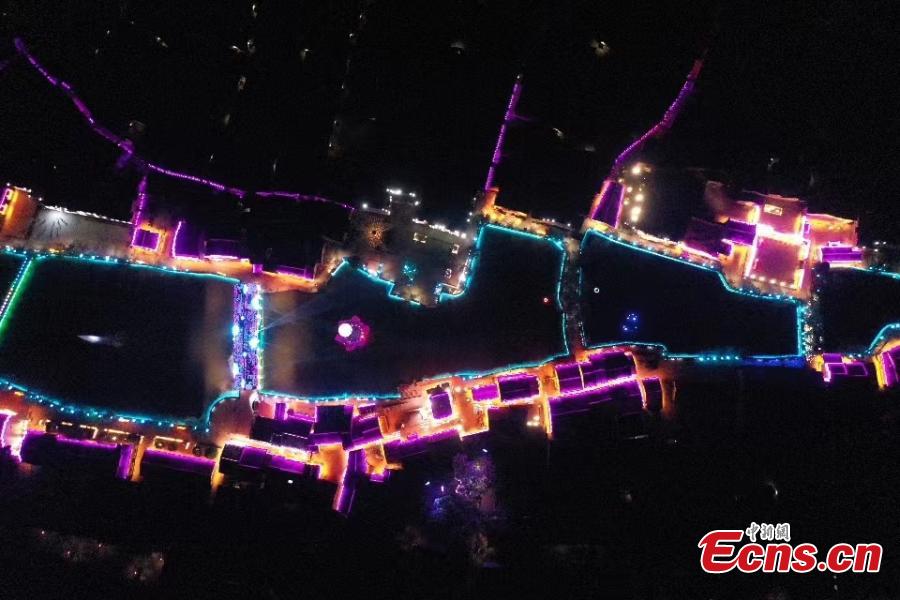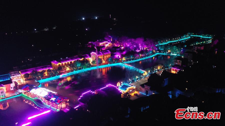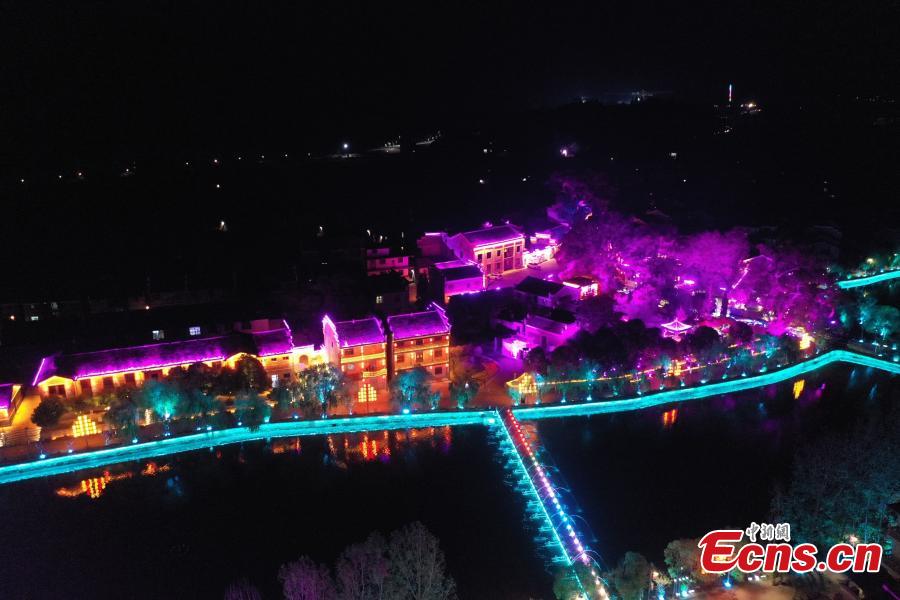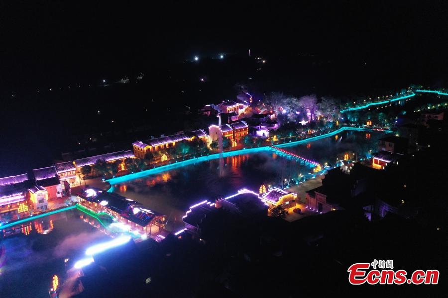 Colorful lights illuminate ancient Liukeng village in Le'an County, east China's Jiangxi Province, Oct. 30, 2022. (Photo: China News Service/Tang Xiaojun)