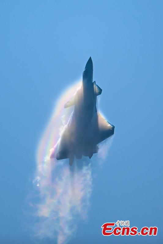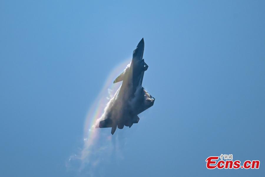 A China's J-20 fighter jet performs at the 14th China International Aviation and Aerospace Exhibition (Airshow China) in Zhuhai, south China's Guangdong Province, Nov. 10, 2022. (Photo: China News Service/Chen Jimin)