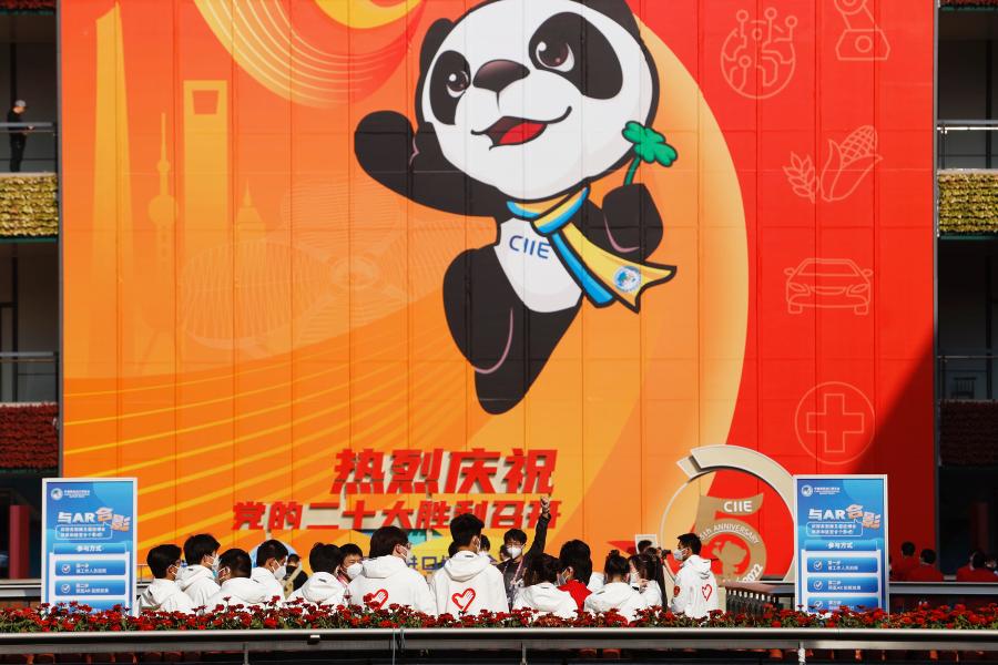 Visitors leave the National Exhibition and Convention Center (Shanghai), the main venue of the 5th China International Import Expo (CIIE) in Shanghai, Nov. 10, 2022. The 5th CIIE concluded on Thursday in Shanghai. (Photo: China News Service/Yi Liqin)