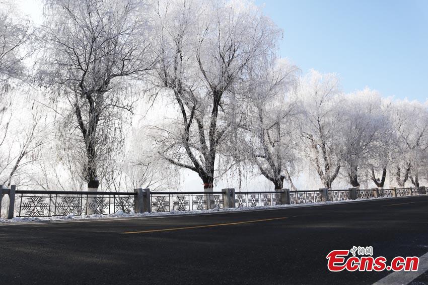 Crystal-clear icicles hang on trees along the banks of Songhua River, covering the landscape in a palette of silver and white, a typical but unique winter scene in Jilin City, northeast China's Jilin Province, Nov. 15, 2022. (Photo: China News Service/Cang Yan)