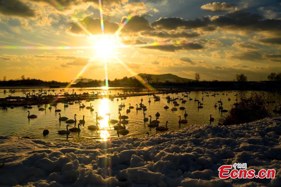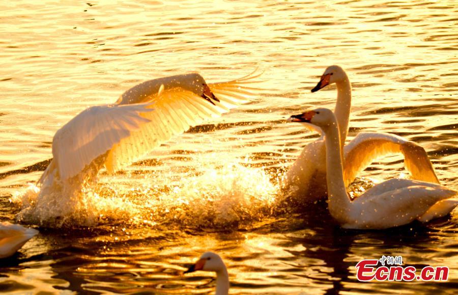 Whooper swans from Siberia arrived at Rongcheng to spend winter, adding fun to the coastal city.