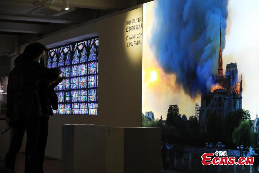 A visitor takes photos of an exhibit during the world's first immersive exhibition on Notre-Dame de Paris, marking its Asian debut in Shanghai, Dec. 5, 2022. (Photo: China News Service/Tang Yanjun)
