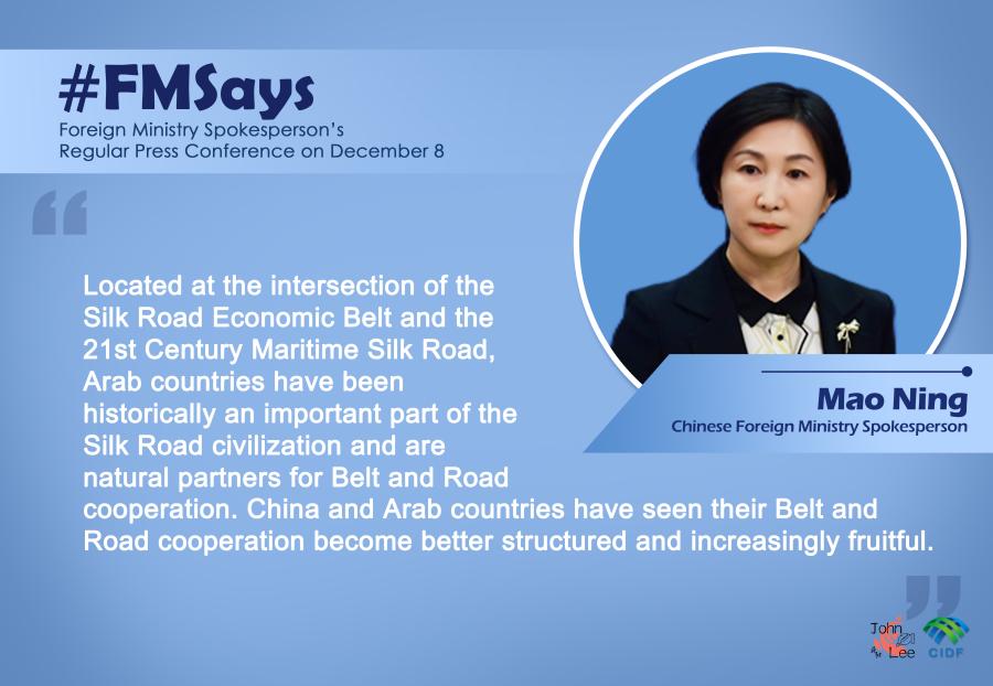 China and Arab countries see B&R co-op better structured, increasingly fruitful: FM spokesperson