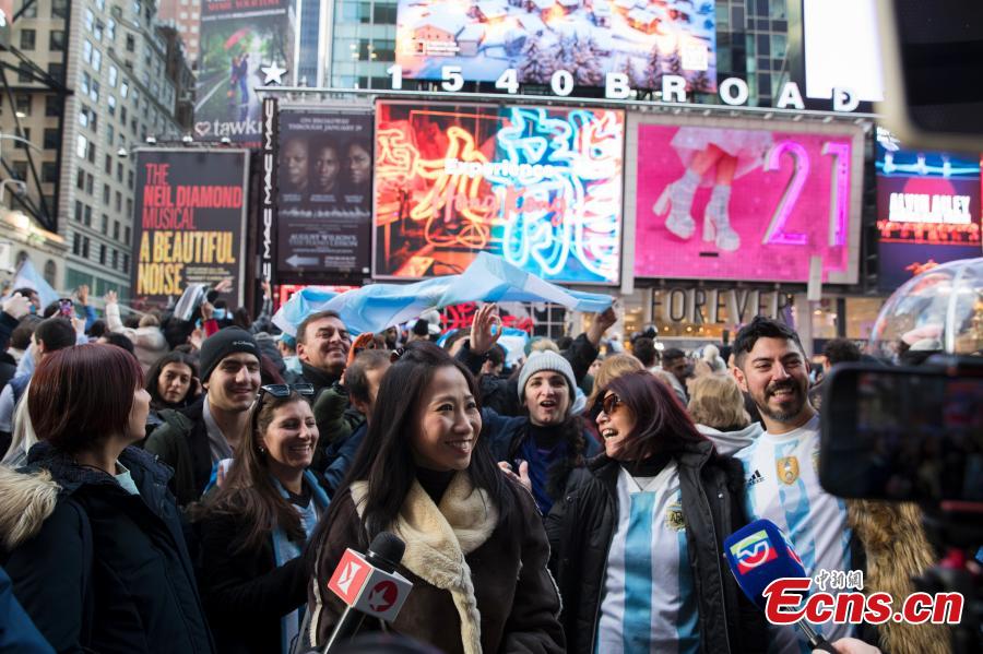 Iconic scenes of Hong Kong light up the giant LED screen at New York Times Square ahead of its New Year's Eve Countdown in New York City, U.S., Dec. 18, 2022. The video launch is also a prelude to the upcoming New Year's Eve Countdown performance by Hong Kong artists at New York Times Square on December 31, 2022. (Photo: China News Service/Liao Pan)
