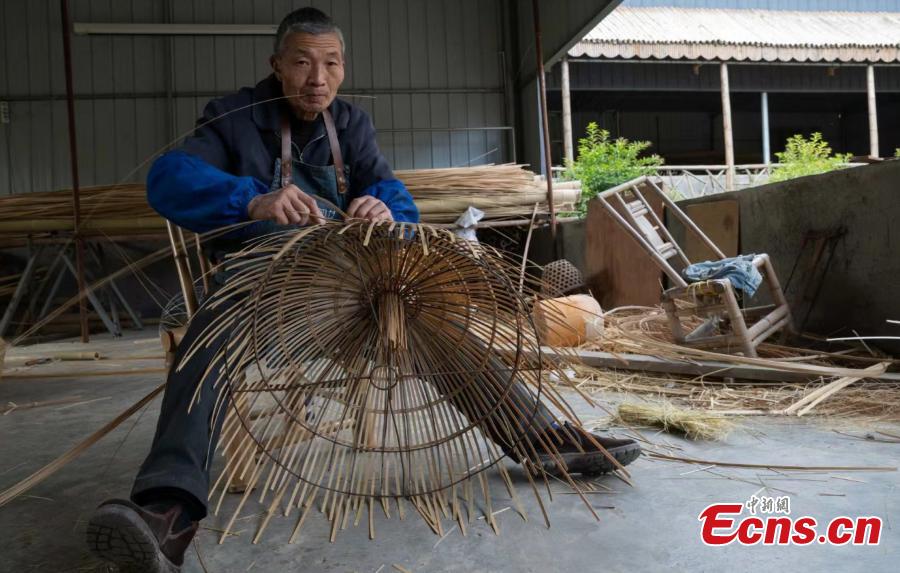 A villager weaves bamboo products in Jingzhu Village, one of the Best Tourism Villages of 2022, in Chongqing, Dec. 20, 2022. (Photo: China News Service/Wang Jinchuan)