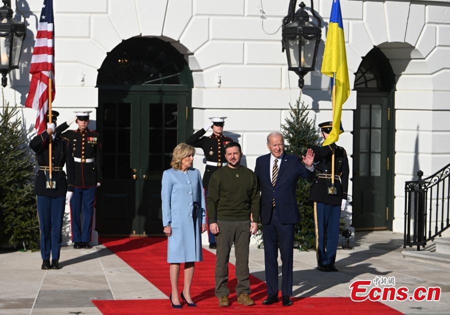 U.S. President Joe Biden and First Lady Jill Biden greet Ukrainian President Volodymyr Zelensky at the White House, Washington DC, U.S., Dec. 21, 2022. (Photo: China News Service/Chen Mengtong)