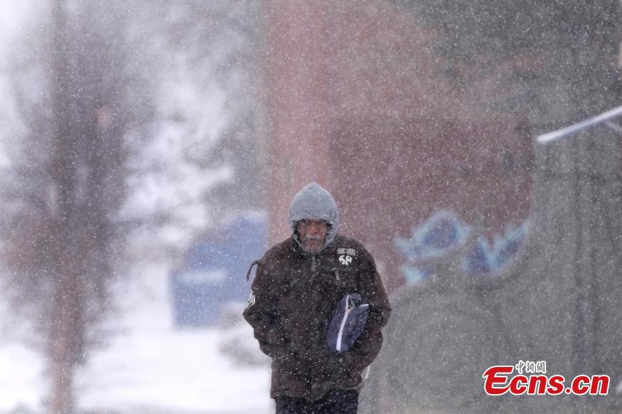 A man walks across Wisconsin Avenue as snow begins to fall in Milwaukee, U.S., Dec 22, 2022. (Photo/Agencies)
