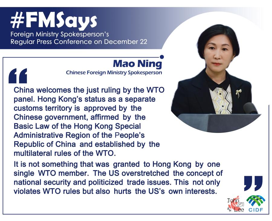 China welcomes WTO ruling against U.S. regarding 'Made in Hong Kong' label