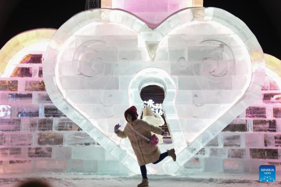 Tourists visit the Harbin Ice-Snow World in Harbin, northeast China's Heilongjiang Province, Dec. 31, 2022. (Xinhua/Wang Jianwei)