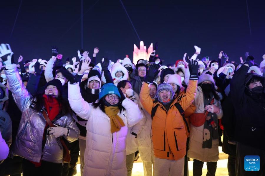 Tourists visit the Harbin Ice-Snow World in Harbin, northeast China's Heilongjiang Province, Dec. 31, 2022. (Xinhua/Zhang Tao)