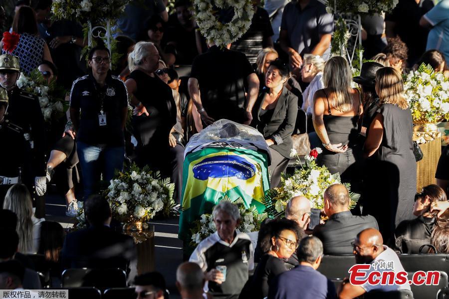 Pallbearers carry the casket of Brazilian soccer legend Pele to the centre circle of his former club Santos' Vila Belmiro stadium where he will lie in state for 24 hours before his funeral in Santos, Brazil, Jan. 2, 2023. (Photo/Agencies)