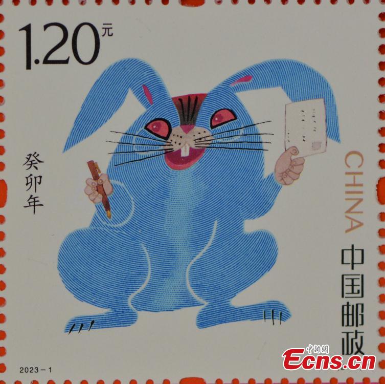 Photo shows the Year of the Rabbit stamp designed by Chinese painter Huang Yongyu, Jan. 5, 2023. (Photo provided to China News Service)