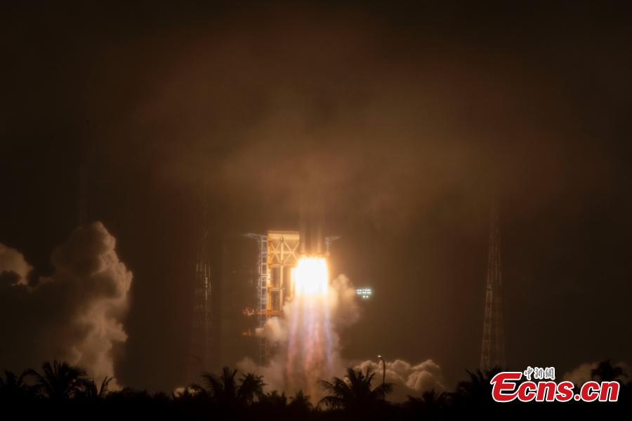 A modified version of the Long March 7 carrier rocket carrying Shijian-23, Shiyan-22A and Shiyan-22B satellites blasts off from the Wenchang Spacecraft Launch Site in south China's Hainan Province, Jan. 9, 2023. (Photo: China News Service/Luo Yunfei)