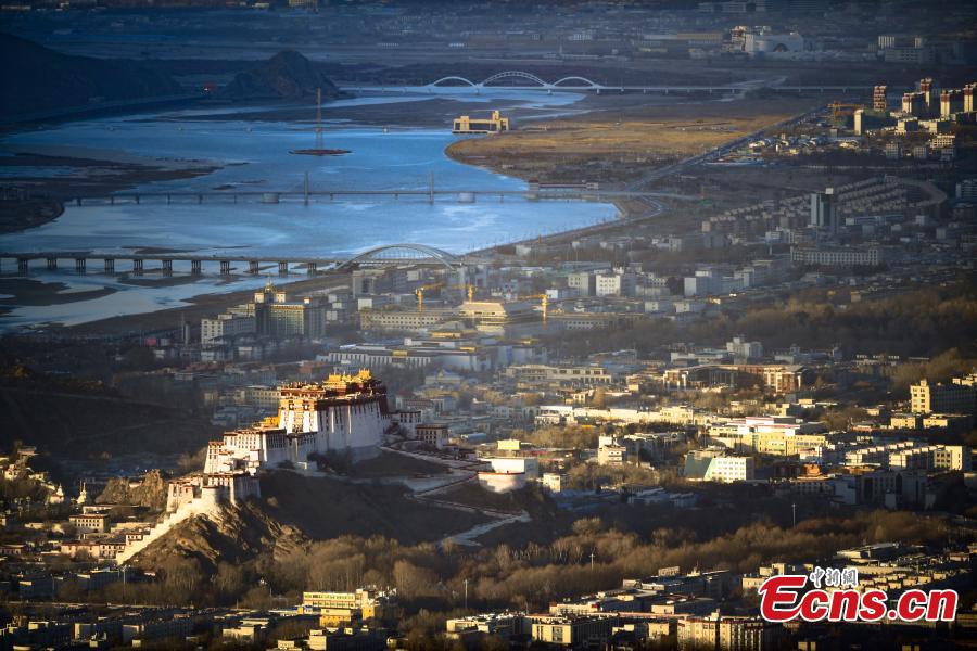 Stunning scenery shows the landmark Potala Palace at first light on a winter morning in Lhasa, southwest China's Tibet Autonomous Region, Jan. 13,, 2023. (Photo/China News Service)