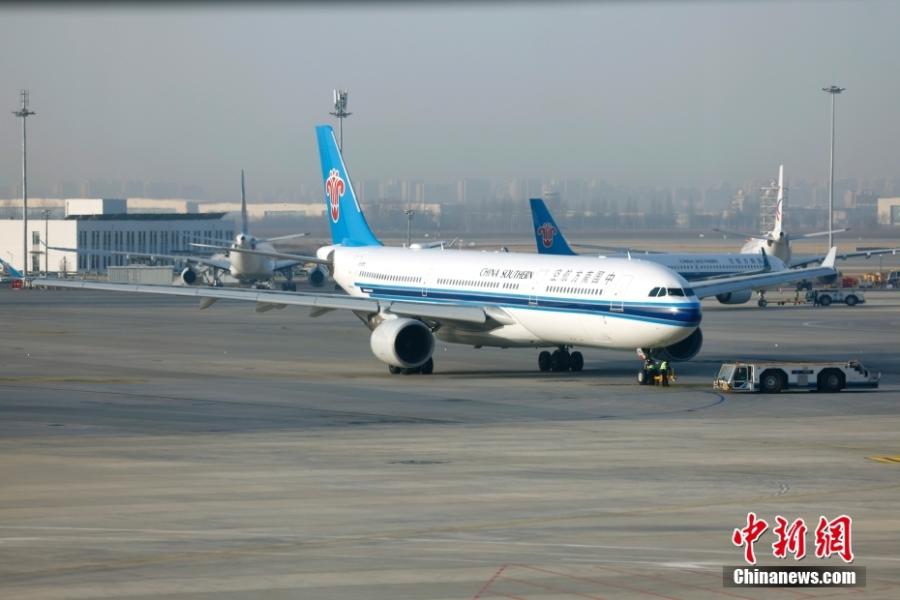 An aircraft prepares to take off from Beijing Daxing International Airport, Jan. 17, 2023. (Photo: China News Service/Fu Tian)
