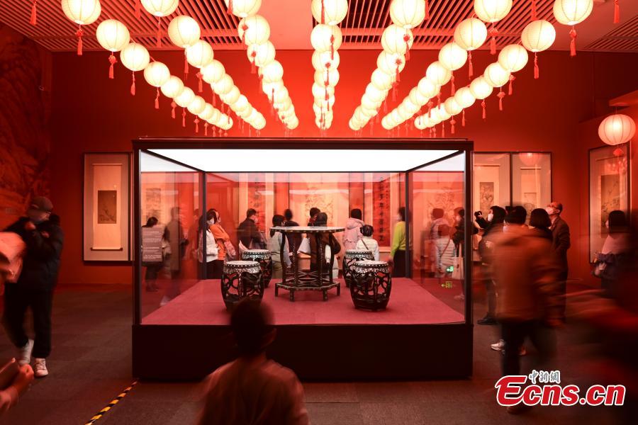 Visitors view cultural relics during a themed exhibition at the National Museum of China in Beijing, Jan. 18, 2023. (Photo: China News Service/Tian Yuhao)