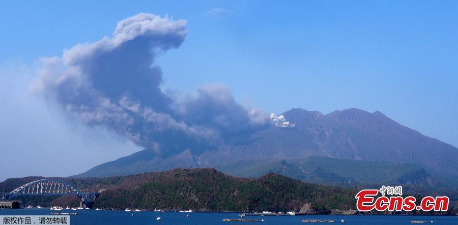 Photo taken on Feb. 8, 2023 shows an eruption, the first explosive eruption since April 2018, on Sakurajima volcano in Japan. (Photo/Agencies)