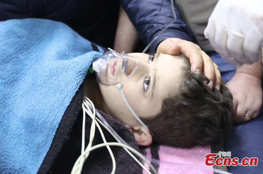 A 12-year-old boy is rescued from the debris of a collapsed building, 260 hours after deadly earthquakes struck Hatay, Türkiye, Feb. 17, 2023. (Photo/VCG)
