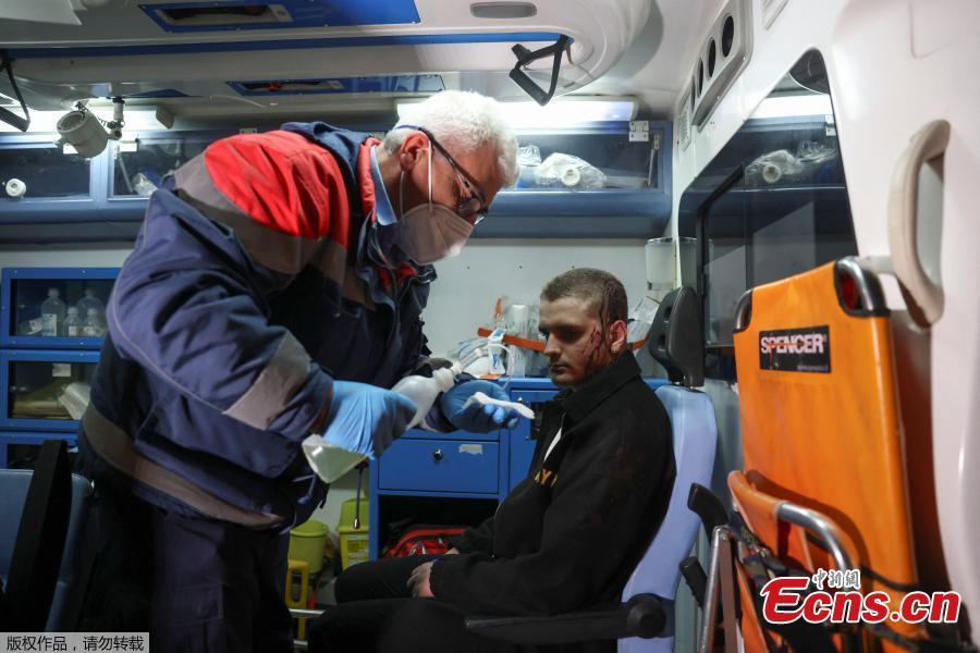 A medic treats an injured passenger, after two trains collided, near the city of Larissa, , Greece, March 1, 2023. (Photo/Agencies)