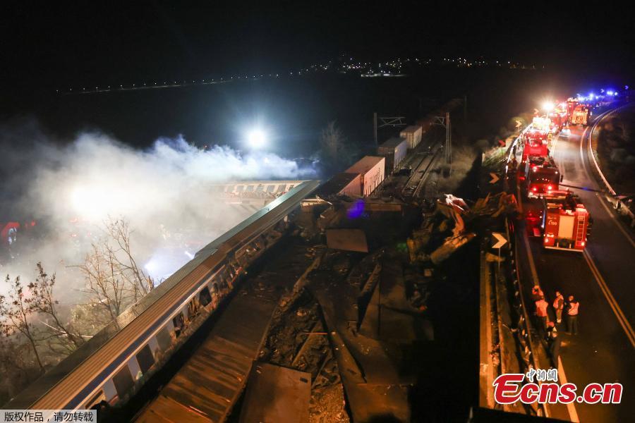 The site of a crash, where two trains collided, is seen near the city of Larissa, Greece, March 1, 2023. (Photo/Agencies)
