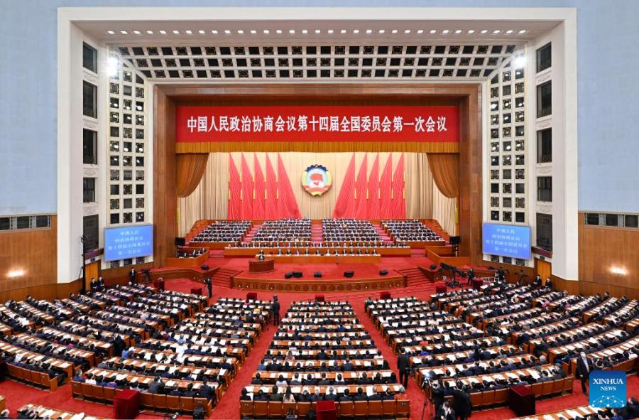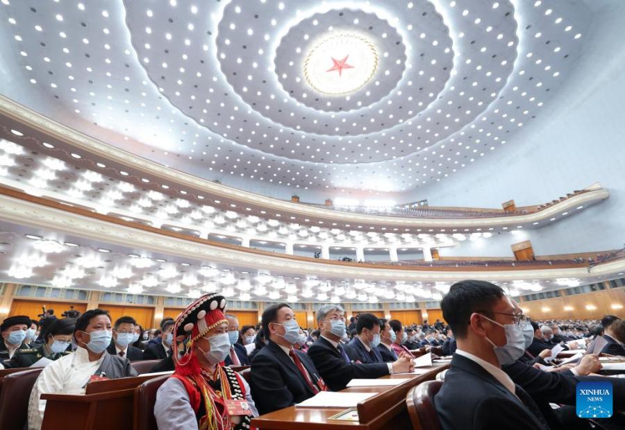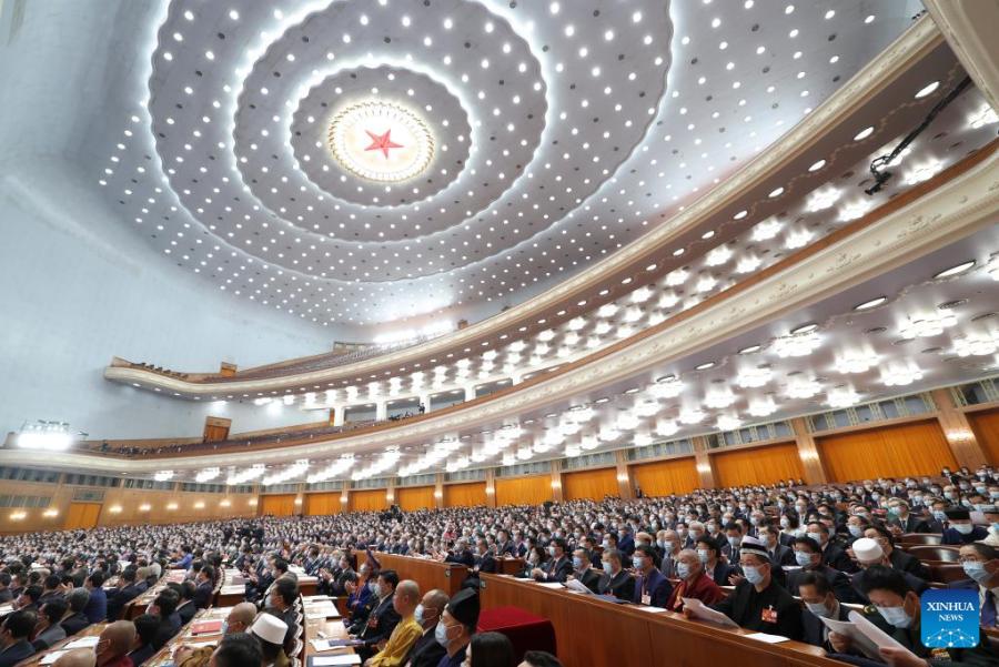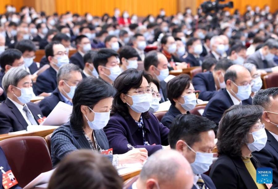 Members of the 14th National Committee of the Chinese People's Political Consultative Conference (CPPCC) attend the second plenary meeting of the first session of the 14th CPPCC National Committee at the Great Hall of the People in Beijing, capital of China, March 7, 2023. (Xinhua/Wang Ye)