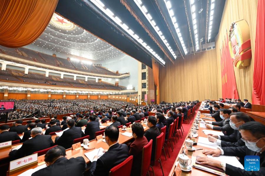 The second plenary meeting of the first session of the 14th National Committee of the Chinese People's Political Consultative Conference (CPPCC) is held at the Great Hall of the People in Beijing, capital of China, March 7, 2023. (Xinhua/Li Xueren)