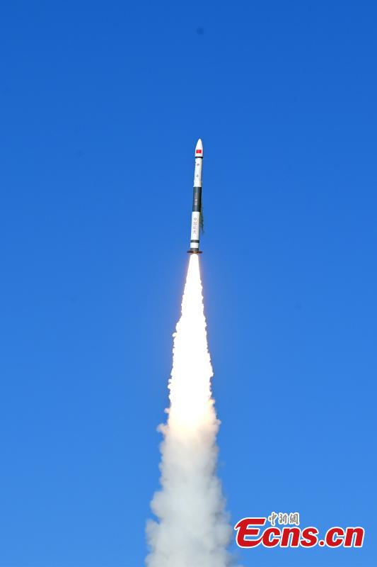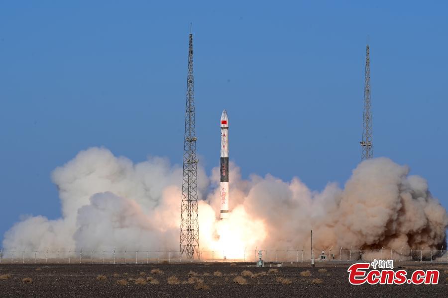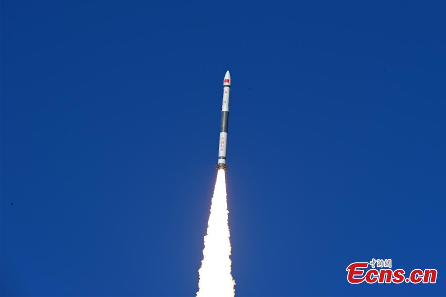 A Kuaizhou-1A carrier rocket carrying Tianmu-1 meteorological constellation with four satellites blasts off from Jiuquan Satellite Launch Center in northwest China, March 22, 2023. (Photo: China News Service/Wang Jiangbo)