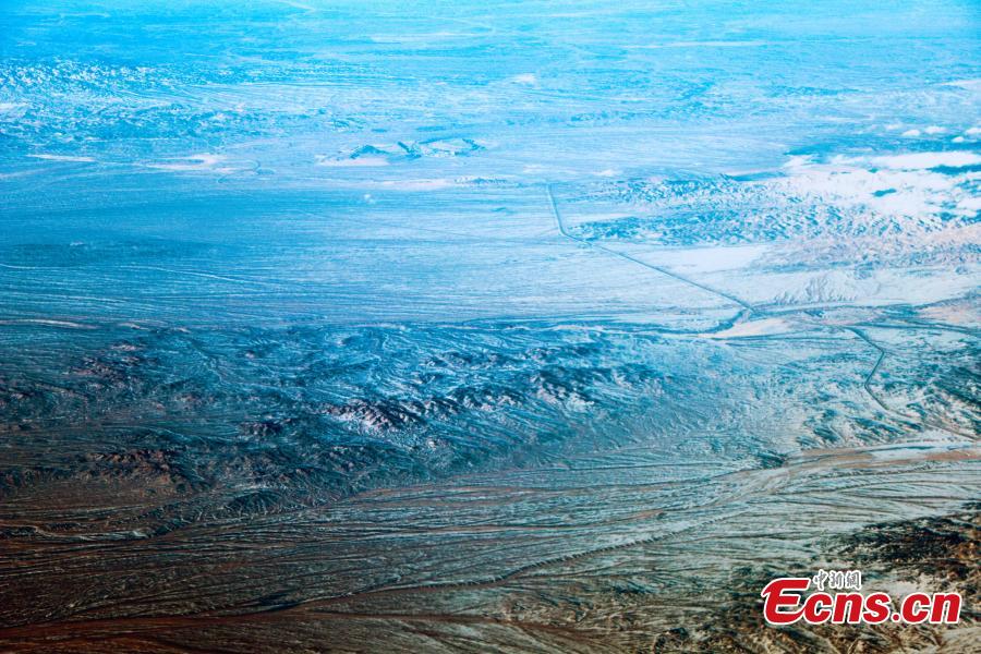 Aerial view of the landscape of snow-covered mountain range of Tianshan in Urumqi, northwest China's Xinjiang Uyghur Autonomous Region, March 21, 2023. (Photo/VCG)