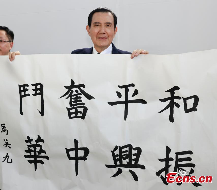 Ma Ying-jeou, former chairman of the Chinese Kuomintang party, writes an inscription meaning "Peace, endeavor, revitalizing China" in commemoration at the Sun Yat-sen Mausoleum in Nanjing, east China's Jiangsu Province, March 28, 2023. (Photo: China News Service/Lu Mei)