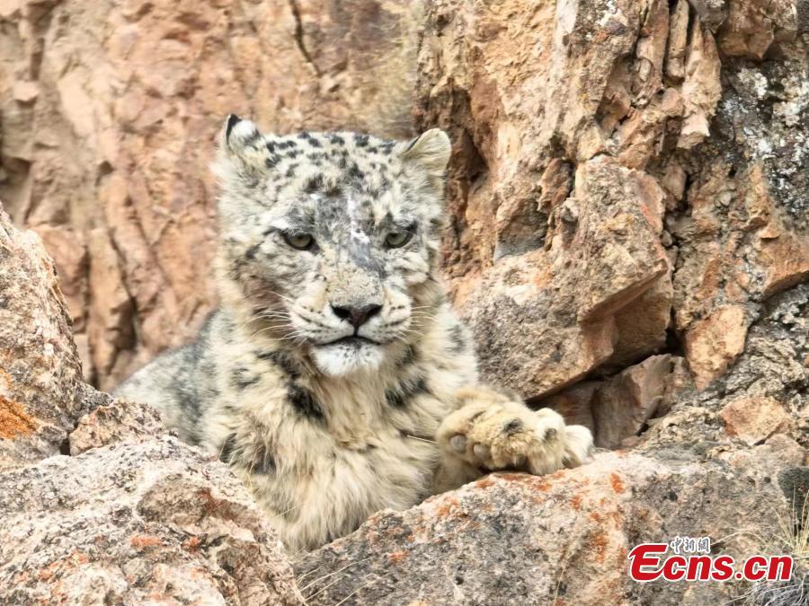 A snow leopard is pictured on the Qilian Mountains in Zhangye, northwest China's Gansu Province. (Photo: China News Service/Lang Wenrui)