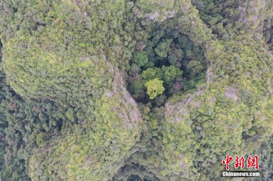 A 72.4-meter-tall Parashorea chinensis (Shorea wangtianshuea) tree is found at a karst peak cluster depression of Nonggang National Nature Reserve, Ningming County, south China's Guangxi Zhuang Autonomous Region, March 2023. (Photo provided to China News Service)