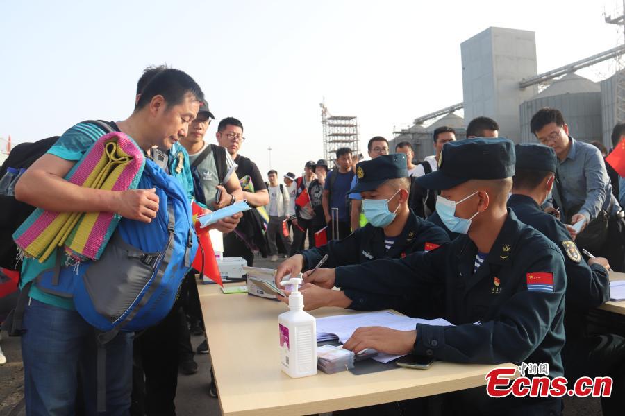 People are guided to board a PLA Navy ship at Port Sudan, April 26, 2023. (Photo: China News Service/Li Yinuo)