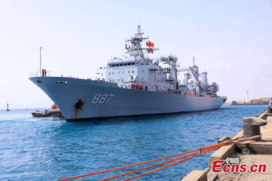The Chinese People's Liberation Army (PLA) Navy's comprehensive supply ship Weishanhu dorks at Port Sudan for evacuation mission, April 26, 2023. (Photo: China News Service/Tang Siyu)