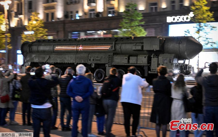 Military vehicles are seen during a rehearsal of the Victory Day parade in Moscow, Russia, April 27, 2023. (Photo/Agencies)
