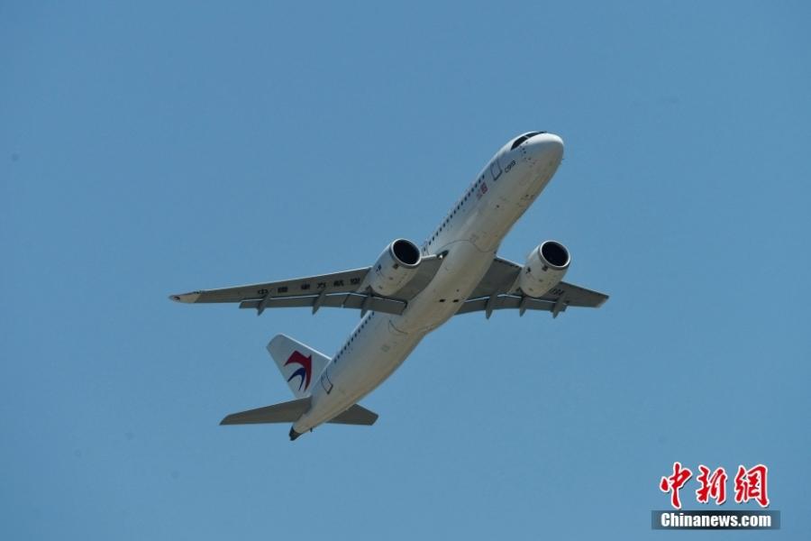 A China Eastern Airlines' C919, China's self-developed large passenger aircraft takes off from the Hongqiao International Airport in Shanghai, May 28, 2023. (Photo/ICphoto)
