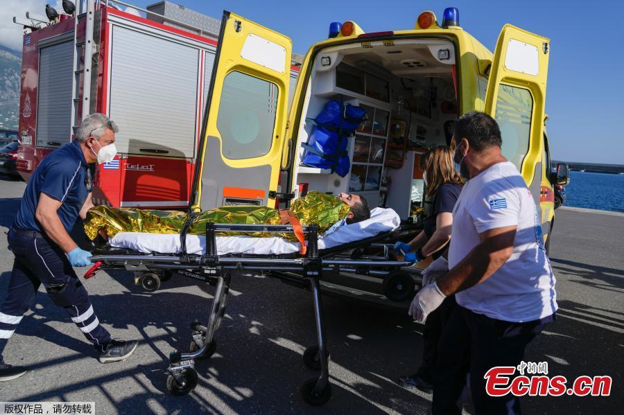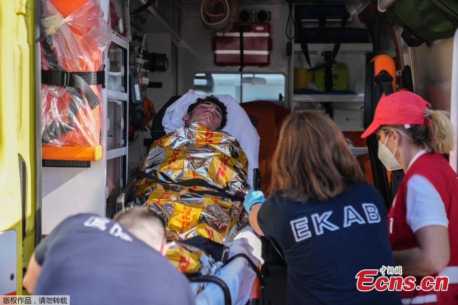 Paramedics transfer an injured survivor of a shipwreck to an ambulance at the port in Kalamata town, Greece, June 14, 2023. (Photo/Agencies)