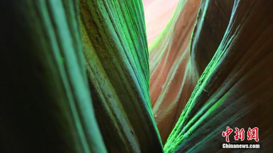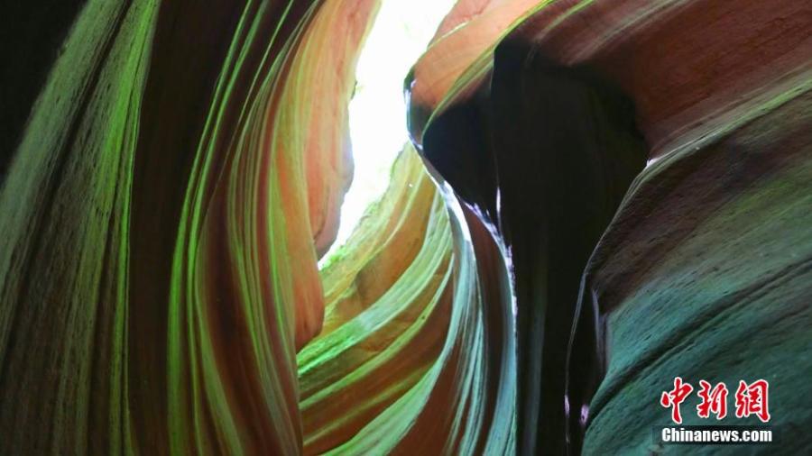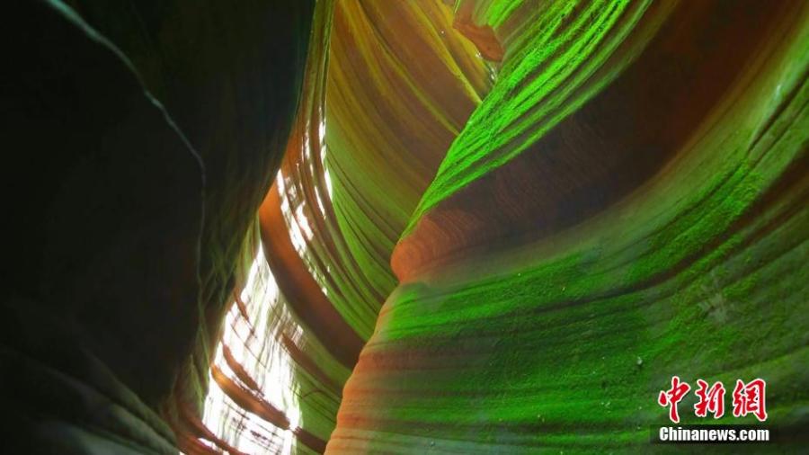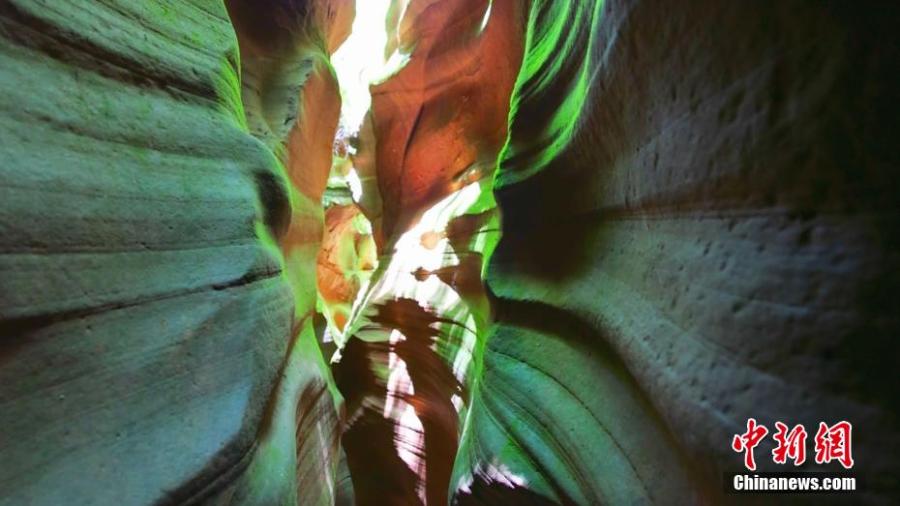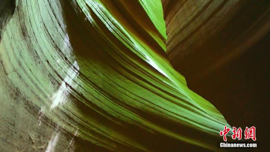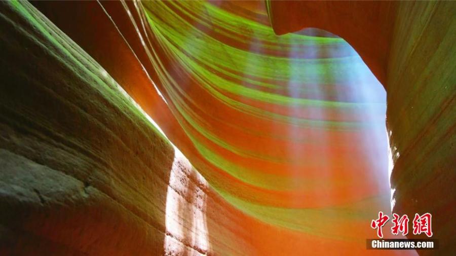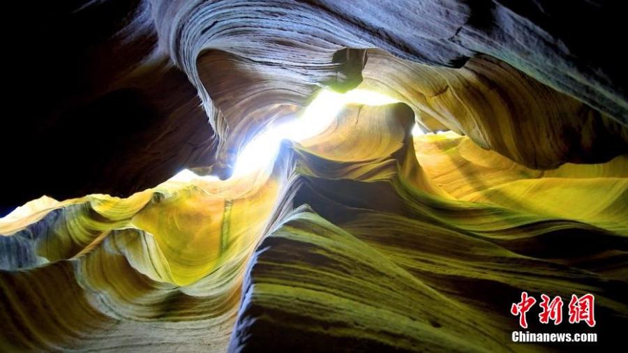 Sunshine casts into the Ganquan Grand Canyon, creating mysterious beauty in northwest China's Shaanxi Province. The canyon on the loess plateau, formed by erosion from flash flooding, features amazing "flowing" shapes in towering rock. (Photo: China News Service/Bai Teng)