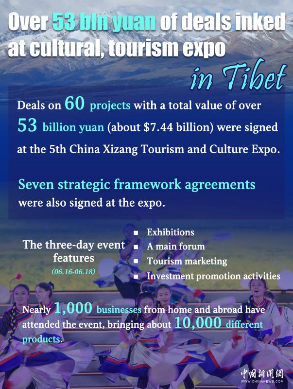 In Numbers: Over 53 bln yuan of deals inked at cultural, tourism expo in Tibet