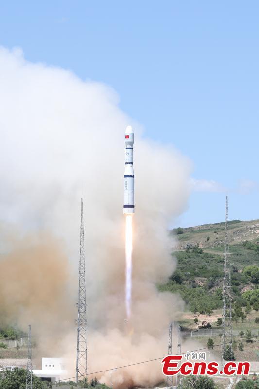 A Long March-6 carrier rocket carrying the Shiyan-25 satellite blasts off from the Taiyuan Satellite Launch Center in north China's Shanxi Province, June 20, 2023. (Photo: China News Service/Zheng Bin)