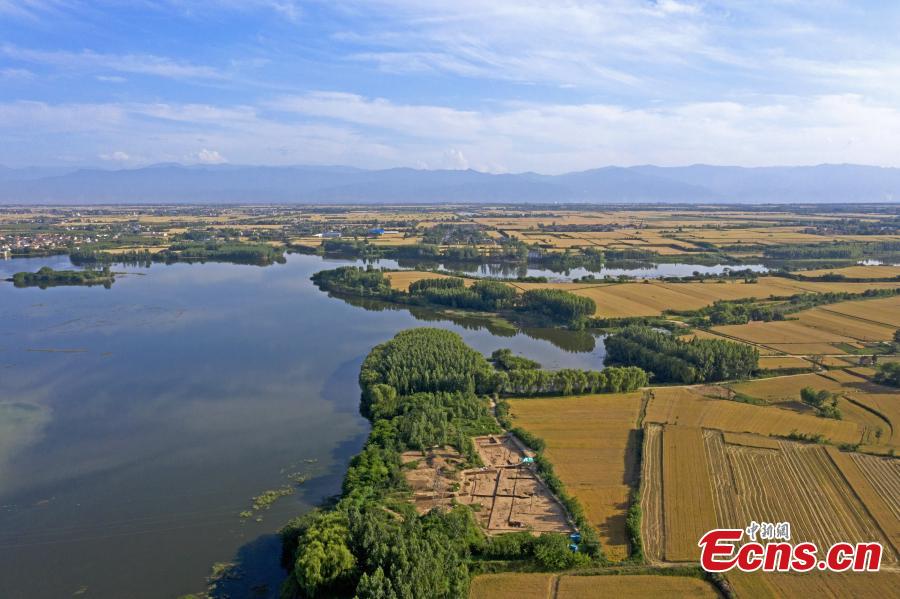 Aerial view of a large architectural site of the Qin State during the Spring and Autumn Period (770-476 B.C.) in northwest China's Shaanxi Province, June 20, 2023 (Photo provided to China News Service)