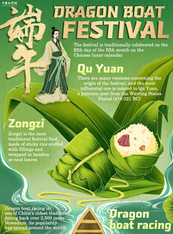 The Dragon Boat Festival, also called Duanwu Festival, is celebrated on the fifth day of the fifth month on the Chinese lunar calendar. This year's festival falls on June 22.