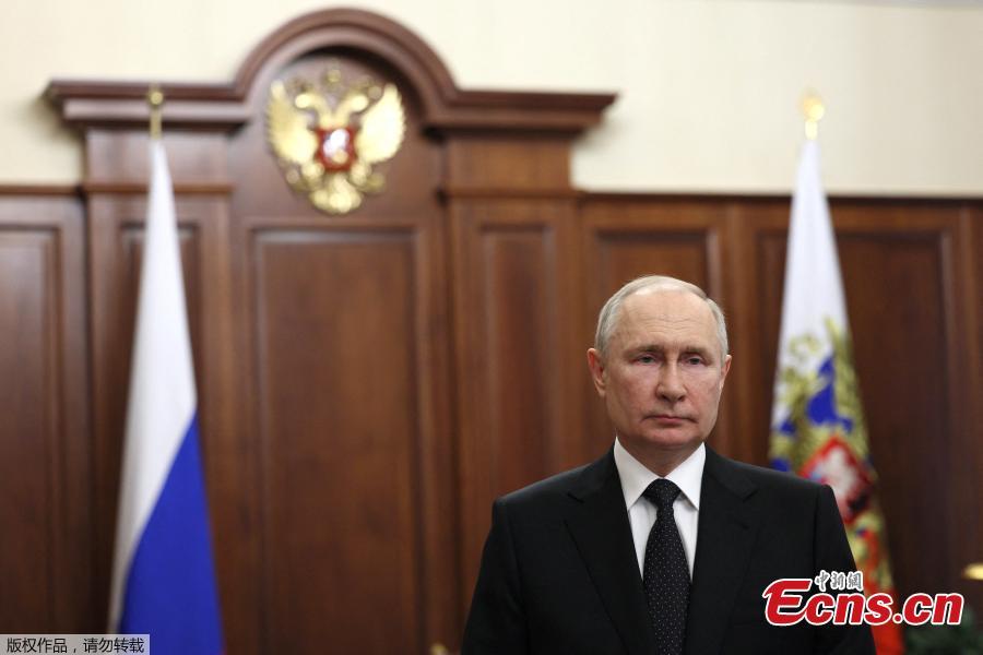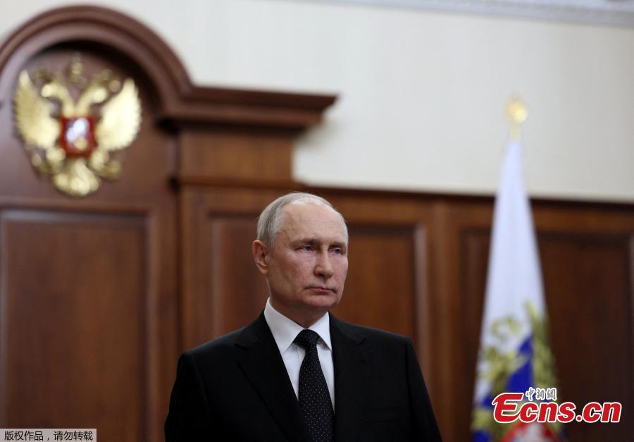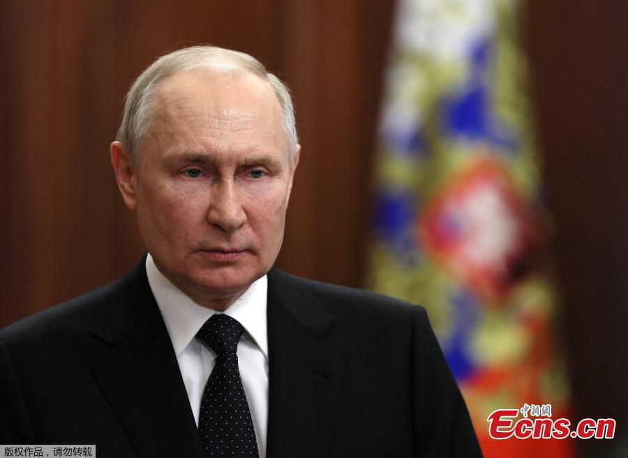 Russian President Vladimir Putin gives a televised address in Moscow, Russia, June 24, 2023.(Photo/Agencies)
