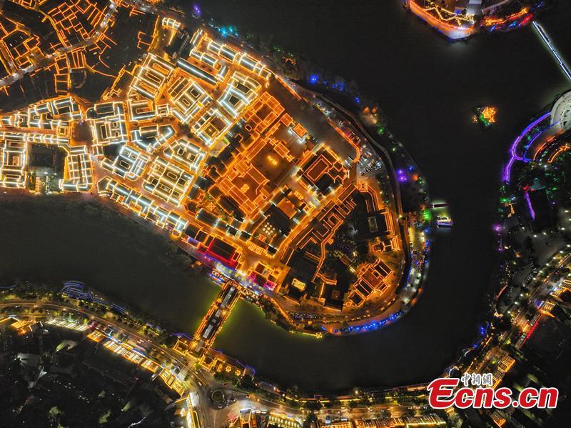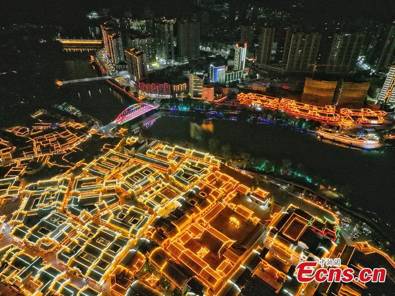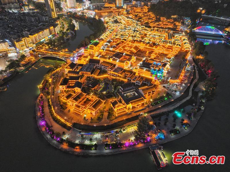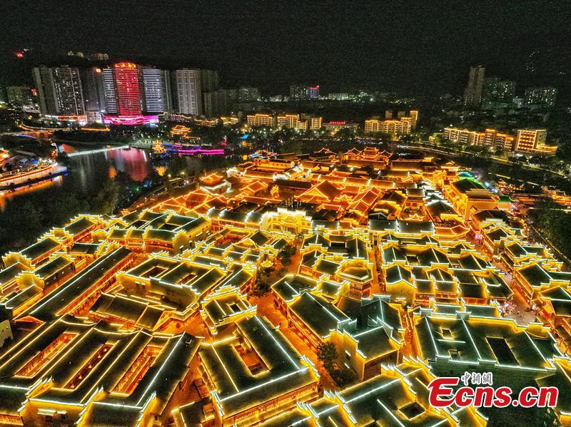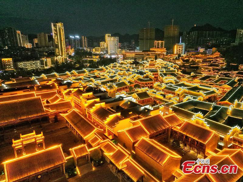 Night view of Zhongnanmen Historical and Cultural Tourists Area in Tongren, southwest China's Guizhou Province, June 25, 2023. (Photo: China News Service/Qu Honglun)