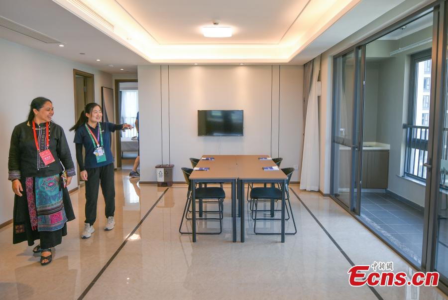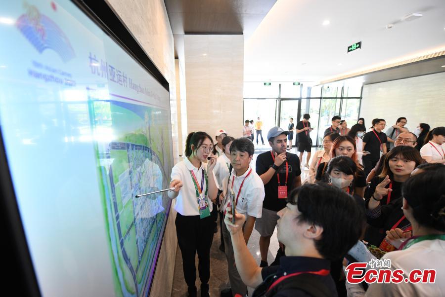 Reporters from home and abroad visit the Media Village for Hangzhou Asian Games in east China's Zhejiang Province, June 28, 2023. (Photo: China News Service/Wang Gang)